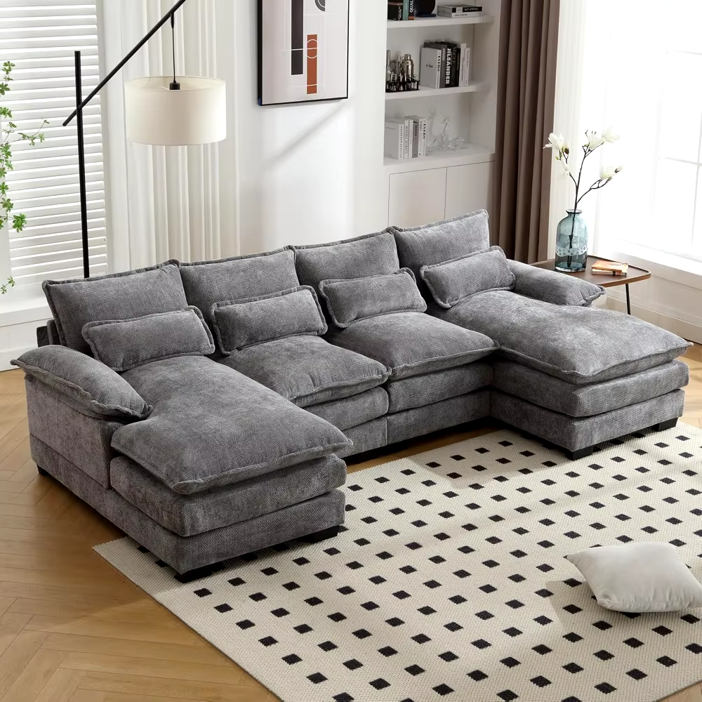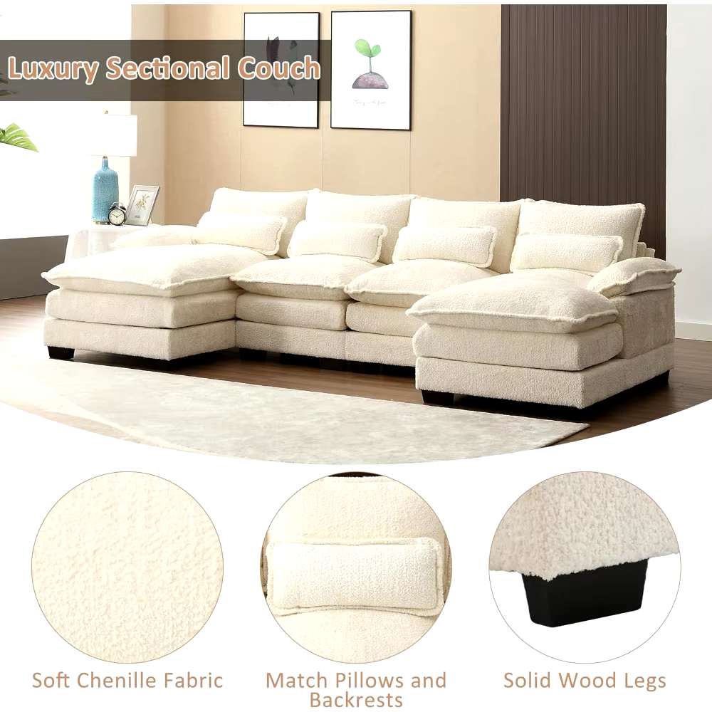 110″ Sectional Sofa Couch for Living Room, Modern Chenille U Shaped Couch, Modular Sofa Sleeper with Double Chaise & Memory Foam
