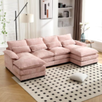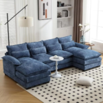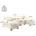 - Comfortable Sectional Couch: The U shaped sectional sofa features upholstered 2-layer seat cushions with high-resiliency foam to provide a soft and cozy feel, and each seat is equipped with match pillows and cushions, so whether you’re sitting down and relaxing or lying down and taking a nap, this sofa will provide you with an unbelievably comfortable experience.