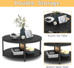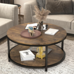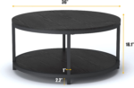 - [2-Tier Coffee Table]The round table top is 36 inch, which provides spacious space for living room supplies and keep your daily essentials nearby. The bottom shelf is 33.5″, gives you extra space to store magazines and toys, and make your room tidy and neat.