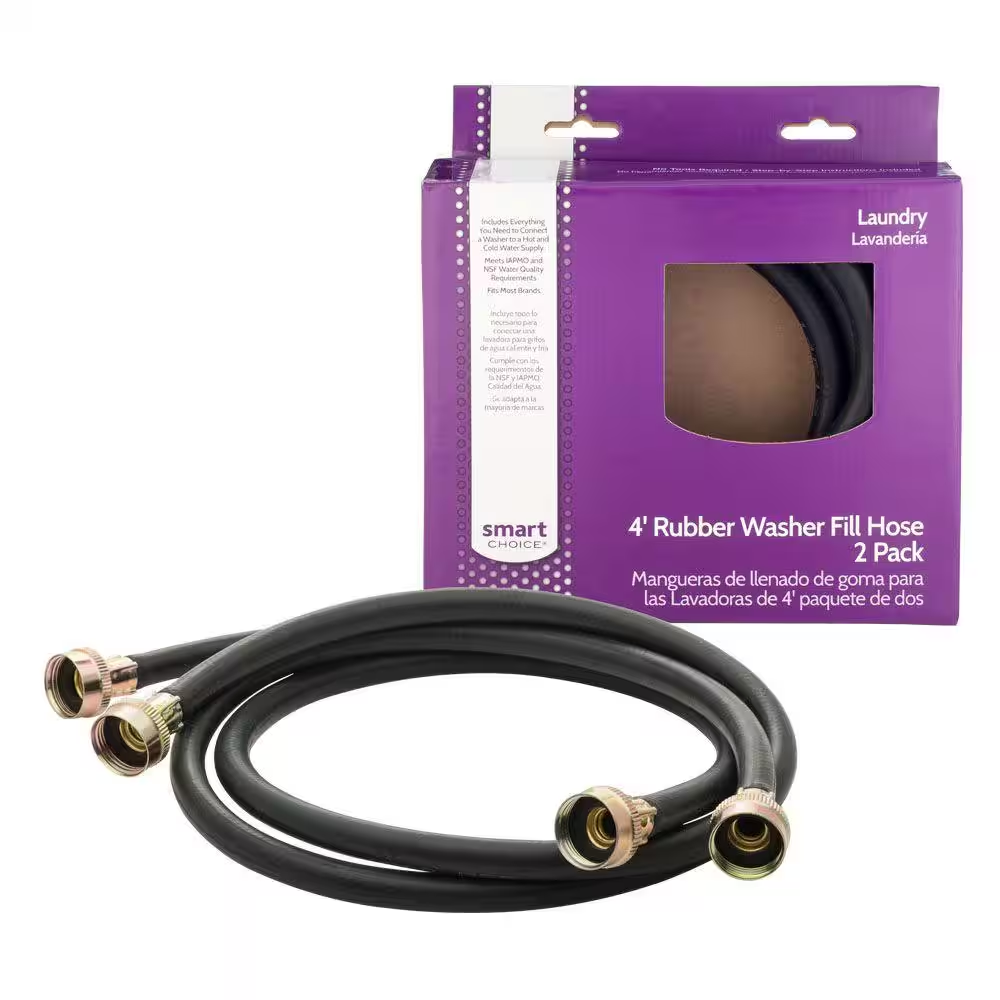 Smart Choice 4 ft. rubber washer fill hose used to connect your washer to the supply water line. Can be used for hot or cold water. Includes 2 rubber washer hoses and washers.