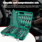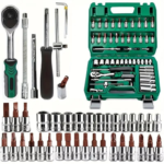 This professional household hardware tool set/car repair tool set is a must-have for any DIY enthusiast or mechanic. It includes essential tools such as a ratchet torque wrench, wrenches, screwdrivers, and socket combinations.