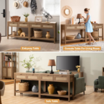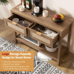 【Stable & Sturdy Structure】-Sturdy wooden material enhance safety and stability, making it last for long-time use. The back of the table has anti-toppling fittings to keep the console table stable. The Anti-Slip& mute sticker design at the bottom of the table corner protects the floor and prevents the table from tilting.