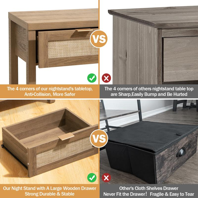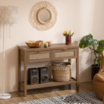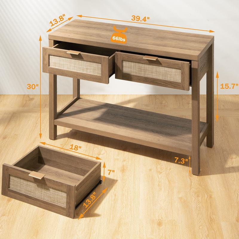 【Modern Boho Console Table】- Designed with natural wood grain and rattan-decorated drawers, has a clear texture. The classic design blends well with any style of decor, adding a sense of elegance to your room.