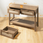 SICOTAS Console Table with Rattan Drawers – Unique Boho Rattan Entryway Table Side Table with Storage, Wood Small Console Tables for Entryway, Entry Table for Hallway, Sofa Table Coffee Table, Spacious Storage, Stable and Sturdy